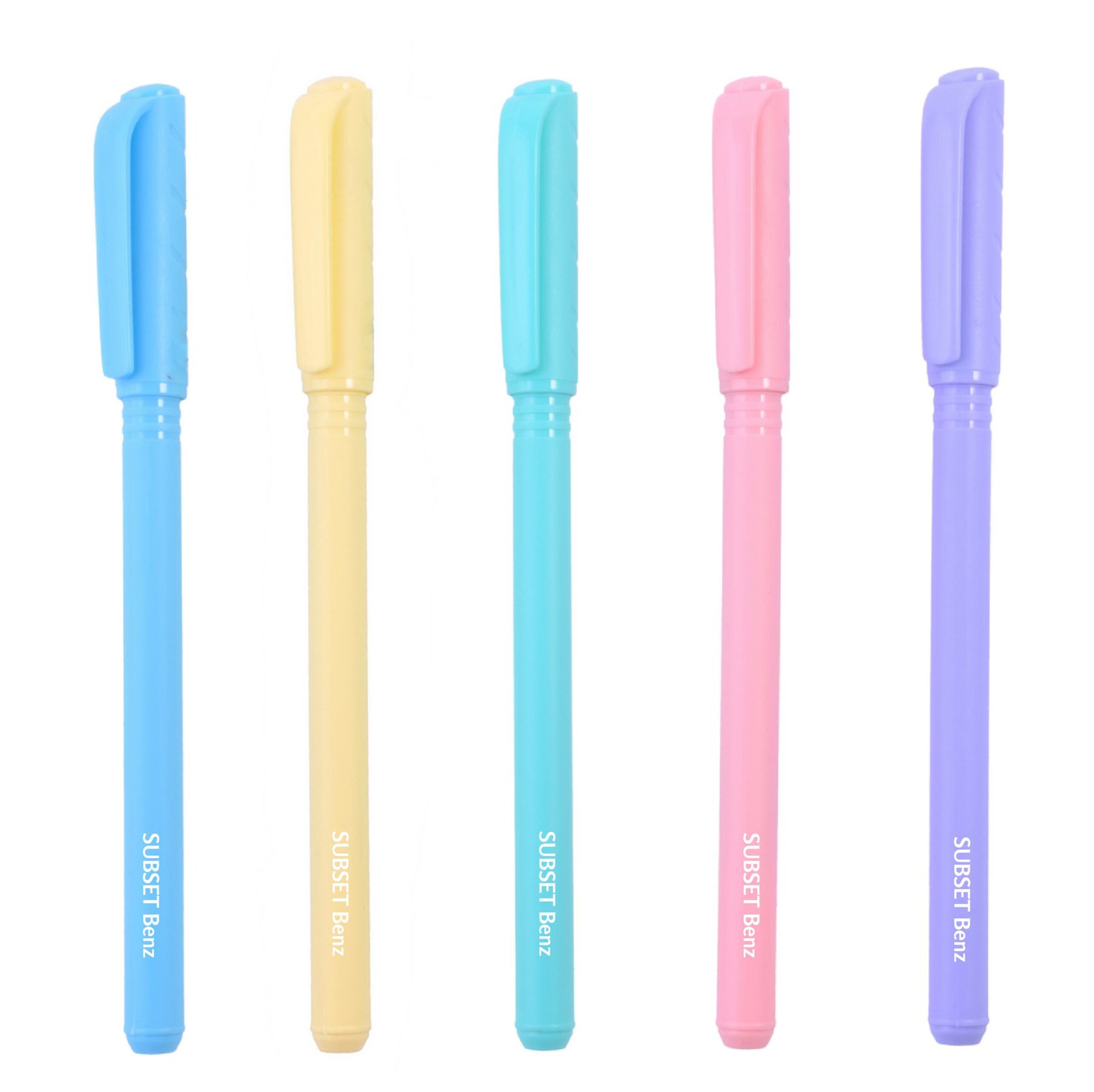 5 pens in assorted pastel colors.